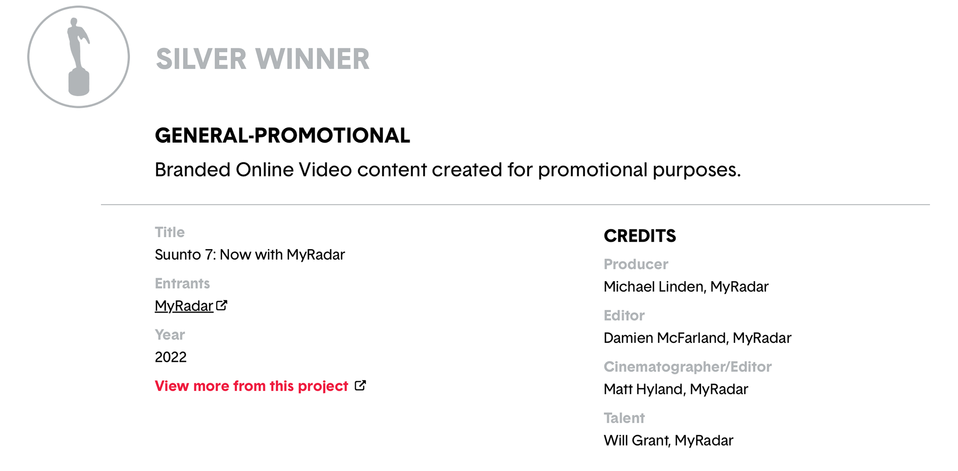 This is an ad in partnership with Suunto, showcasing the Suunto watch utilizing the MyRadar app.